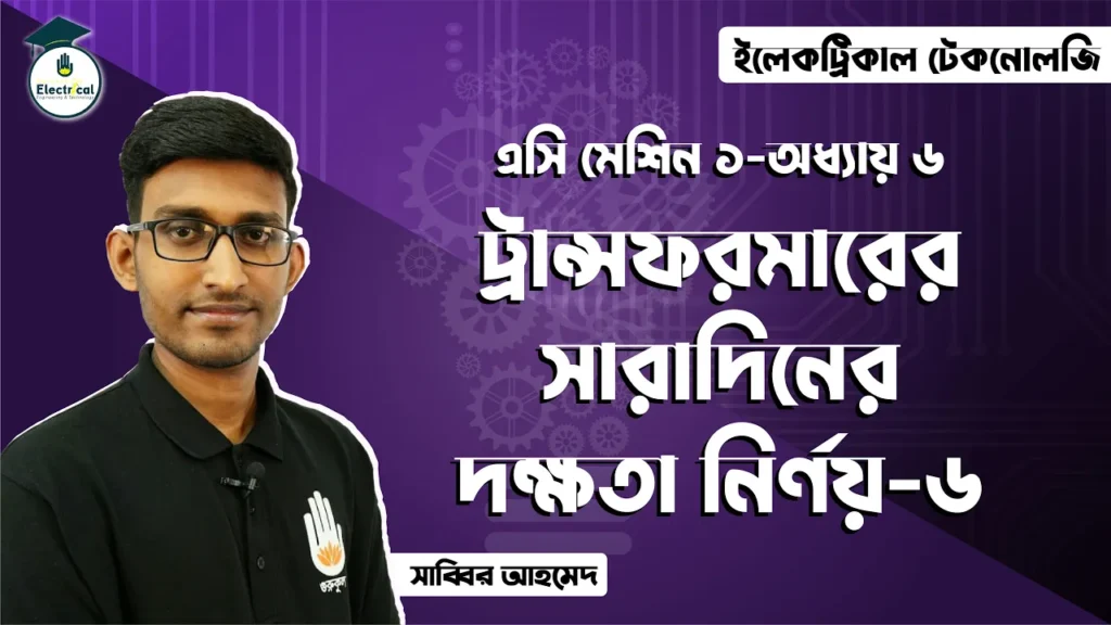 ট্রান্সফরমারের সারাদিন এর দক্ষতা নির্ণয় ক্লাসটি “এসি মেশিনস – ১ [ AC Machines – 1 ]” কোর্সের “অধ্যায় ০৬/Chapter 06” এ পড়ানো হয় | এই ক্লাসটি বাংলাদেশ কারিগরি শিক্ষা বোর্ড [Bangladesh Technical Education Board] এর পলিটেকনিক [Polytechnic] ডিসিপ্লিন এর ডিপ্লোমা ইন ইলেক্ট্রিক্যাল [Diploma in Electrical] এ পড়ানো হয়।