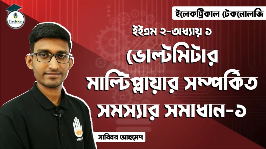 ভোল্টমিটার মাল্টি প্লায়ার সম্পর্কিত সমস্যার সমাধান ক্লাসটি “ইলেকট্রিক্যাল এন্ড ইলেকট্রনিক্স মেজারমেন্টস – ০২ [Electrical and Electronic Measurements-02 ]” কোর্সের “অধ্যায় ০১ /Chapter 01” এ পড়ানো হয় | এই ক্লাসটি বাংলাদেশ কারিগরি শিক্ষা বোর্ড [Bangladesh Technical Education Board] এর পলিটেকনিক [Polytechnic] ডিসিপ্লিন এর ৬ষ্ঠ সেমিস্টার, ইলেকট্রিক্যাল টেকনোলজি [ 6th Semester, Electrical Technology ] এ পড়ানো হয়।