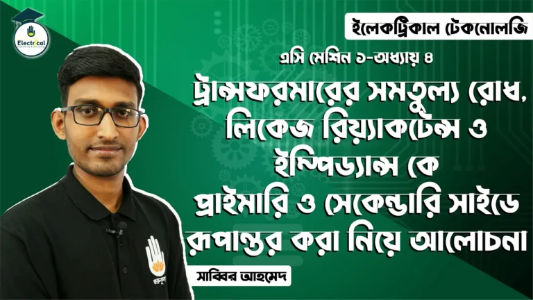 ইম্পিড্যান্স প্রাইমারি ও সেকেন্ডারি সাইডে রূপান্তর ক্লাসটি “এসি মেশিনস-১ [ AC Machines-1 ]” কোর্সের “অধ্যায় ৪/Chapter 4” এ পড়ানো হয় …